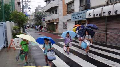 先週から秋雨前線の影響でぐずついた天気が続いていますが、2学期始業式の9月1日(火)も、朝から雨となりました。そんな中、子どもたちが大きな荷物を抱えて元気に登校してきました。初日から元気な「おはようございます」の声が響き、2学期が始まったなあという実感がしました。