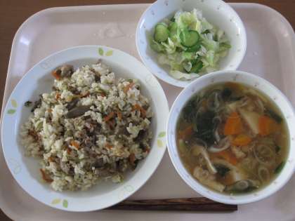 豚肉とごぼうのごはん 牛乳 吉野汁 野菜のごま風味