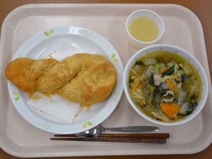 ☆きな粉揚げパン☆ 牛乳 春雨スープ グレープフルーツゼリー