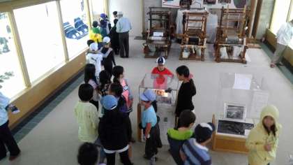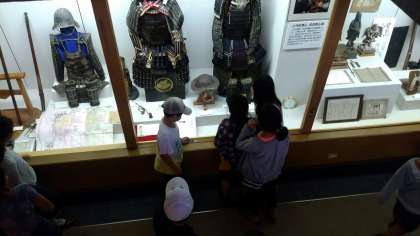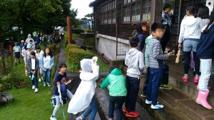 予定より早く歴史民俗資料館に到着。一般の方も含めて、たくさんの団体が入っていて混雑していました。川場村の歴史や風土を学びます。珍しい展示物もあり子どもたちは興味深く見学していました。
