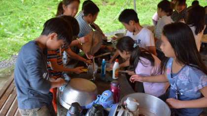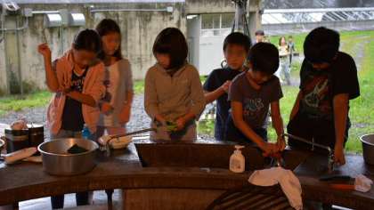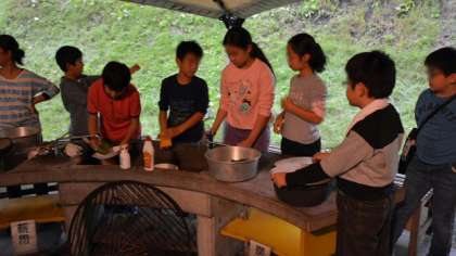 おいしいカレーを食べた後は片付けです。食器や鍋、飯ごうを再び飯ごう炊さん場に運び、きれいに洗います。4時半頃でしたが、まだこの頃にも雨が降り止んでいませんでした。