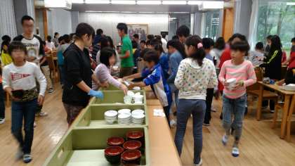 朝食の片付けは、みんなで協力してやります。がんばっています。うすです。
