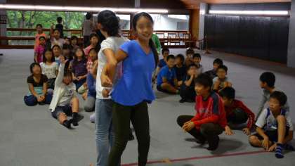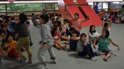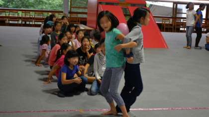 最後の種目は「風船運び」です。2人が背中合わせになって風船を間にはさんで運びます。これも最初は女子。風船が割れてしまいそうで、最初はおっかなびっくりでした。