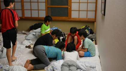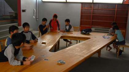 部屋に戻った子どもたちは就寝準備。それが終わった子は荷物の整理や,友達とカードゲームなどして消灯時刻まで思い思いに移動教室最後の一夜を過ごしました。