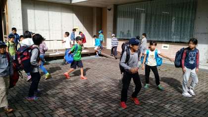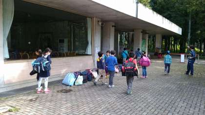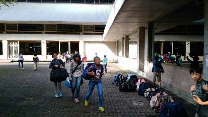 部屋の片付けをすませ、いよいよお別れ、閉室式を行うお祭り広場に荷物をもって集合です。