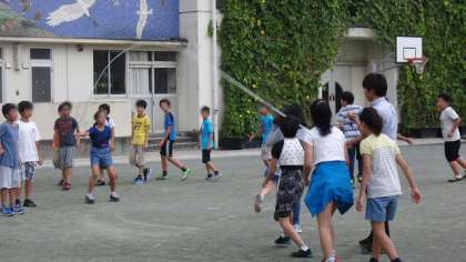12日、6年生が、校庭で元気に長なわ跳びの練習をしていました。10月に連合運動会がありますが、そのなかの団体種目です。本格的な練習がスタートしたばかりですが、みんなやる気を出して頑張っていました。