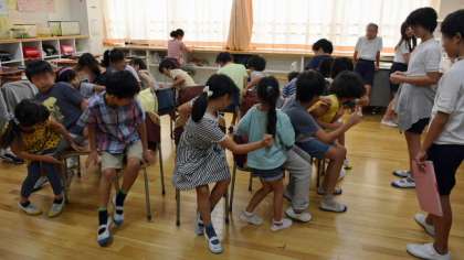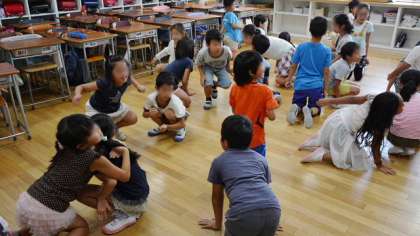 15日(火)の昼休み時間は、1年生から6年生までの児童で編成するグループの交流活動「なかよしタイム」を行いました。各班の6年生が企画した室内レクで楽しみました。
