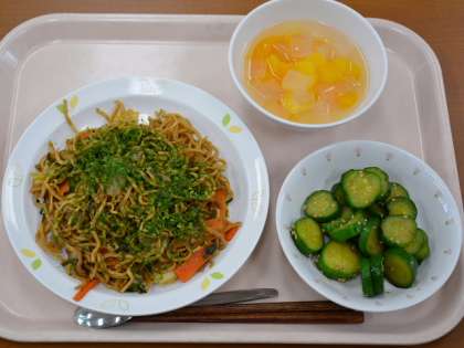 ソース焼きそば 牛乳 中華風きゅうり フルーツポンチ
