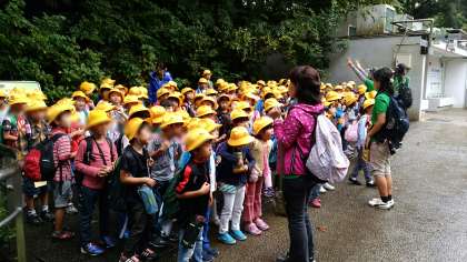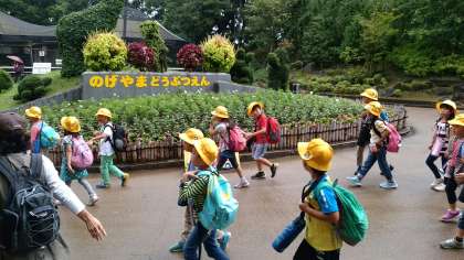 10時10分野毛山動物園に着きました。天気は小雨です。見学を始めます。