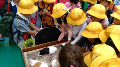 これから、動物園を見学します。最初はふれあい広場でモルモットとハツカネズミとふれあいます。