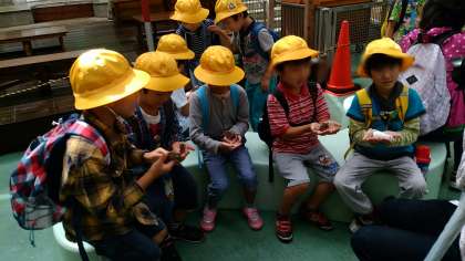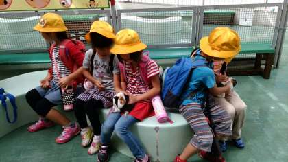 かわいい動物をひざにのせたり手のひらにのせてたりしているところです。みんな元気です。