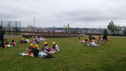 天気がよくなって、とても楽しくおいしくお弁当を食べました。