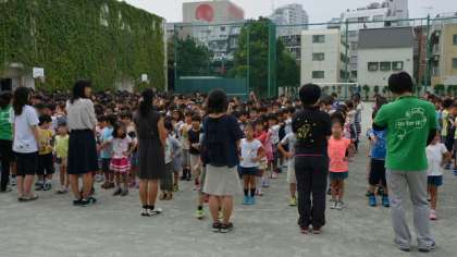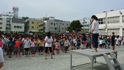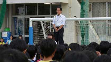 シルバーウィーク明けの24日(木)、朝会を校庭で行いました。校長講話では、前日の23日「秋分の日」のことと、30日まで行われている交通安全運動について話しました。長い休み明けでしたが、子どもたちは落ち着いた態度でしっかり話を聞いていました。