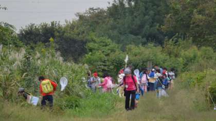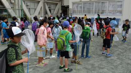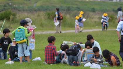 1日(木)、3年生が多摩川河川敷に出かけて、理科の野外学習の「虫とり」をしました。今日は1年生も同じ時間帯に探鳥会を行っていましたので、写真の後方に黄色い帽子をかぶった子どもたちが写っています。今回は「城南環境学習支援グループ」の皆さんに講師をお願いして、グループに分かれて活動しました。一番下の写真を見ると、まるで山の中のようですが、これも多摩川河川敷です。