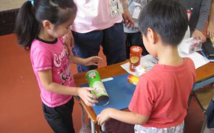 今日の課題は「ころがるかたちと、ころがらないかたちについて考えよう」です。家庭で準備してきた様々な形をした箱を実際に転がして確かめていきます。転がる形、転がらない形を分けて、違いは何かみんなで意見を出し合い考えました。