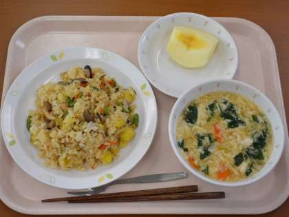 秋の香りごはん 牛乳 むらくも汁 りんご