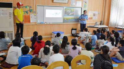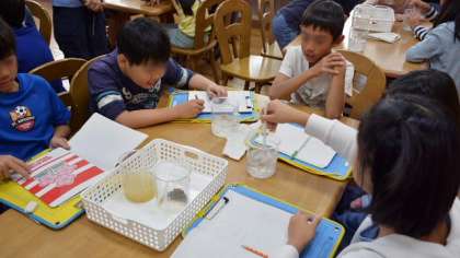 8日(木)、4年生が東京都下水道局が派遣している「下水道キャラバン」の授業を受けました。1学期には同じように「水道キャラバン」の学習をしました。今回は、下水道の仕組みや役割について学びます。写真は、下水道の浄化システムに関連する実験をしているようすです。