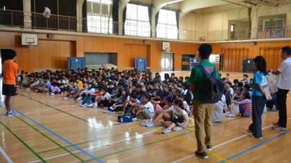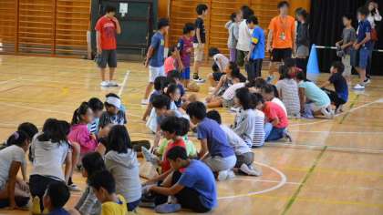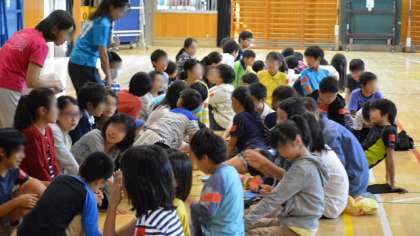 瀬田中学校、瀬田小学校と本校の3校のグループ「多摩川の学び舎」は、義務教育機関の教育に責任をもち、質の高い教育を提供するため、「世田谷9年教育」に取り組んでいるところです。その一環として、毎年小学校同士の連携と交流を深めるため、各学年でゼタ小学校との交流活動を行っています。9日は6年生が本校を会場に行いました。昼過ぎ、瀬田小学校から6年生が体育館にやってきました。2校の児童混合のグループをつくり、活動します。まず最初に自己紹介をしました。