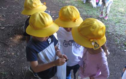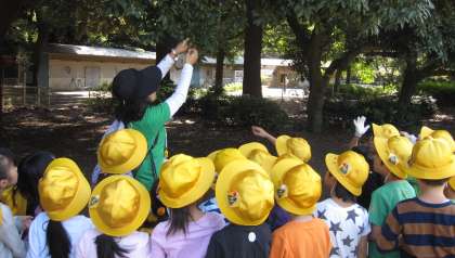 空気が澄んで、太陽がキラキラ。秋を探しに砧公園に出かけました。ゆっくり歩いて30分程で到着。木の下は、様々な大きさや色のどんぐりがたくさん!子どもたち大興奮です。木になっているどんぐりの実も観察することができました。