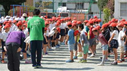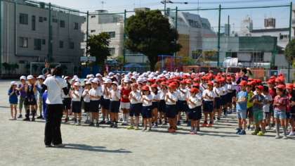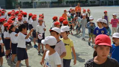 楽しかったミニ運動会も終了。わざわざ歩いてきてくれた瀬田小学校の皆さんと一緒に閉会式です。みんなで並んで見送りました。また、会いましょう。各学年がこのような交流を行い、親睦を深めています。