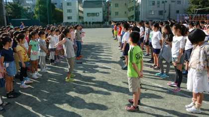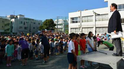 今朝は、明日連合運動会に参加する6年生に、1〜5年生がエールを送りました。健闘を祈ります。