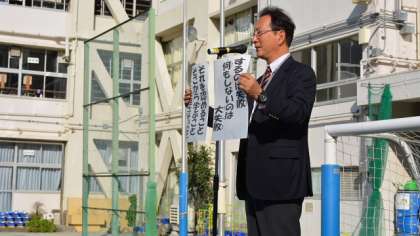 校長講話では「失敗」について、ことわざと格言を例にして話しました。まず「するのは失敗 何もしないのは大失敗」。このことわざは、もし失敗するようなことがあっても何もしないなら経験を積むことができないので、それこそ大失敗であるという意味です。失敗を恐れて何もしないのではなく、失敗してもいいから、物事を体験するということが、非常に大切ということですね。そして失敗したときはどうすればよいのでしょうか。「あなたが失敗したとき、いつもしなければならないことが3つだけあります。それを認めること、そこから学ぶこと、それを繰返さないことです。」という格言を例に話しました。失敗は失敗で終わらせてしまい、ただの失敗にしないことが大切ですね。