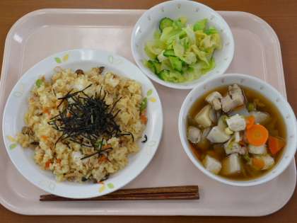 豚肉ときのこのばら寿司 牛乳 けんちん汁 即席漬け
