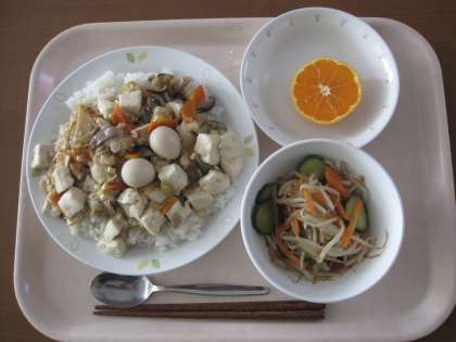 五目豆腐丼 牛乳