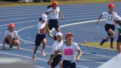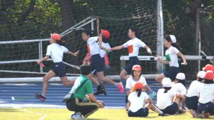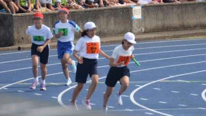 続いて女子のリレー。一人一人の思いとみんなの期待をバトンにのせてつなぎます。最後まで全力で走りました。