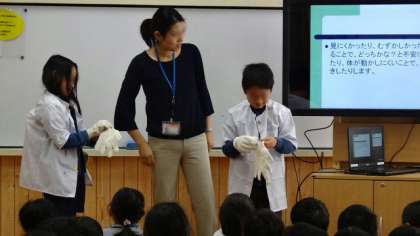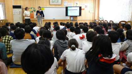 東京都では、「復籍交流」という制度で、地元から特別支援学校に通っている児童とその学区の小学校との交流を推進しています。今回、久我山青光学園に通っている4年生児童との復籍呼交流を行うことになり、それに先立って、4年生全体で「障がい」についての理解を深める授業を行いました。講師として特別支援学校の久我山青光学園の先生においでいただき、交流をする児童と保護者の方にも同席していただきました。講師の先生から、スライドで「障がい」についてわかりやすく説明していただくとともに、実演も交えて理解を深めることができました。その後、交流する児童に自己紹介してもらい、また、保護者の方からもご挨拶をいただきました。障がいのある児童との「インクルーシブ教育」が進められようとしている中、理解を進める上で、よい学びの機会となりました。