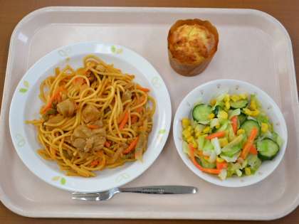 スパゲッティナポリタン 牛乳 コーンサラダ りんごマフィン