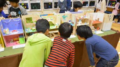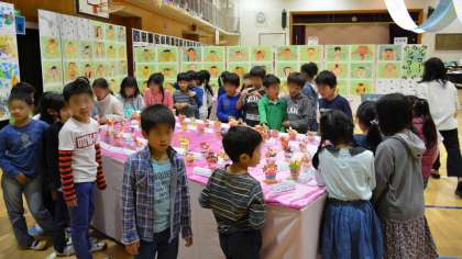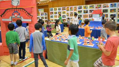6日(金)から展覧会が始まりました。今日は児童鑑賞日です。朝から各学年が頃合いを見計らって会場の体育館を訪れ、みんなの作品を見合いました。