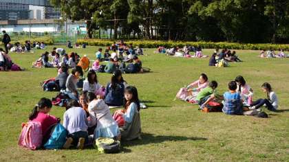 1時間ほどの船旅を終え、お台場海浜公園の桟橋に到着。再びバスに乗り「水の科学館」まで向かいました。見学の前に近くの芝生で昼食をとりました。ちょうど天候も回復して、日がさしてポカポカする中で食べることができ、気持ちよかったです。