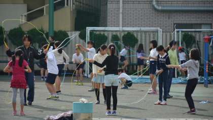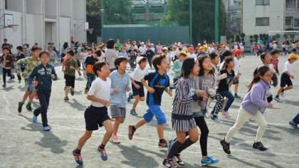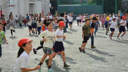 毎週水曜日の中休みの最後の5分間で行う「運動タイム」。展覧会の準備等でしばらく休んでいましたが、18日(水)、久しぶりに行いました。校庭のようすです。午前中は用意天気に恵まれ、子どもたちが校庭でいきいきと走っていました。
