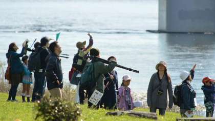 空を飛んでいる鳥も、ガイドさんがいると説明してもらえます。名前や鳥の生活について教えてもらって、いつもなにげなく見ている鳥のことが、身近に感じられるようになりました。