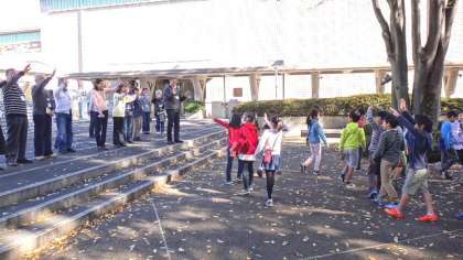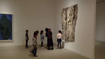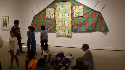 事前の学習で見た写真の実物もありました。予想より大きかったのでびっくりです。鑑賞が終わって、玄関前の広場に集合。お礼の言葉を述べて帰路につきました。ボランティアの皆さんと名残惜しそうに手をふる子どもたちでした。ボランティアの皆さんも、子どもたちの姿が見えなくなるまで、手を振ってくれました。ありがとうございました。