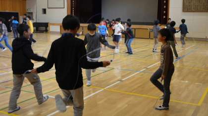 2日(水)の中休み、最後の3分間で「運動タイム」に取り組みます。校庭ではみんな一生懸命3分間走です。肌寒い気温の中、一生懸命走って汗を流している子もいました。体育館では6年生がなわ跳びを元気にしました。