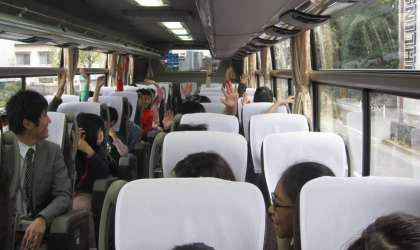 バスの中では、社会科見学実行委員の子どもたちが活躍していました。社会科に関する問題をクイズ形式にして出題し、学習しました。途中、バスガイドさんが車窓の風景について、社会科で学習したこと、これから学習する内容について詳しく解説してくださいました。写真は、見学先のJFEスチール東日本製鉄所近くの京浜工業地帯です。