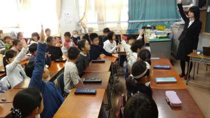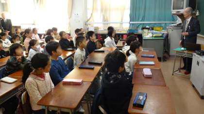 7日(月)、専門の先生をゲストティーチャーとして1学期に行った「交通マナー授業」の2回目を行いました。この授業は、地元のドライビングスクールのご協力で行っているものです。2校時は4年2組、3校時は4年3組、4校時は4年1組です。今日はドライビングスクールの先生も講師役として参加し、主に交通ルールについて、スライドを効果的に使って、実践的な学習をしてくださいました。