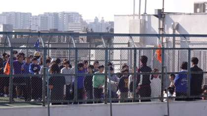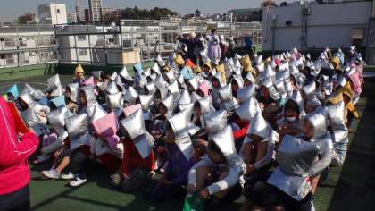 今日は天気がよく、あまり実感を伴わなかったようでしたが、しっかりと「おかしも」の約束を守り整然と避難できました。屋上に集まった子どもたちに、今年の秋、栃木県、茨城県を中心に起こった水害のことを話したところ、うなずいている子も多くいました。こうして、子どもたちの命を守るため、様々な想定で毎月避難訓練を行っています。