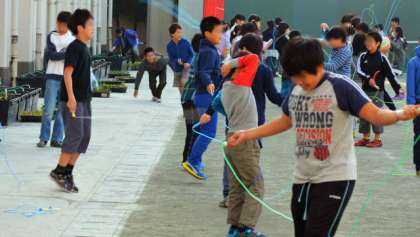 毎週水・木曜日の中休み、最後の5分間は運動タイムです。16日も子どもたちが元気に校庭や体育館で走ったり、縄跳びをしたりしました。