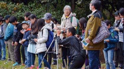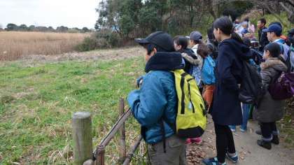 講師の先生が公園内を案内してくださり、観察を行いました。今冬は暖冬で、例年より渡り鳥が少ないということでしたが、公園の観察小屋や観察台から、たくさんの鳥を見ることができました。