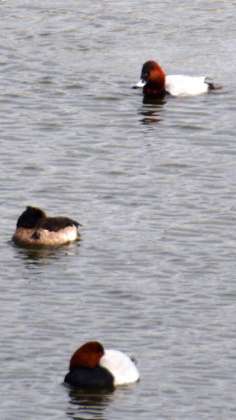二子玉川の河川敷では、あまり見ることのできない鳥もいました。左「ツグミ」、中「ホシハジロ」、左「カイツブリ」