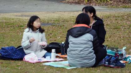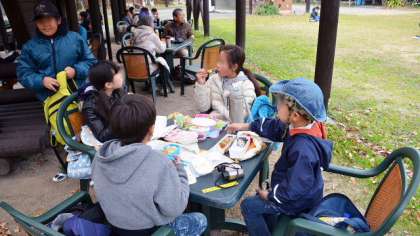 昼は公園の広場で食べました。薄曇りでしたが、思ったより暖かく風もなかったので、参加者みんなで楽しくゆったりと食べることができました。