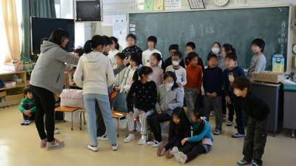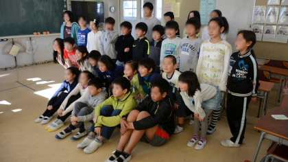 19日(火)、昨日の雪から一転して空は晴れ渡りましたが、今度は冬型の気圧配置に戻り、北風が吹いて寒い一日となりました。昨日の降雪のため、校庭はまだ使えない状態で、中休みは公室内ですごした子どもたちですが、昼休みの時間は「なかよしタイム」で、なかよし班のみんなと一緒に学年を超えて楽しく遊びました。今日は、どの班でも班の集合写真を撮りました。この写真は最後にメッセージをそえて6年生に贈ります。