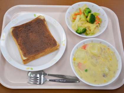 ココアトースト 牛乳 コーンシチュー イタリアンサラダ