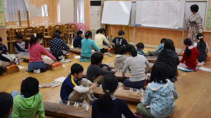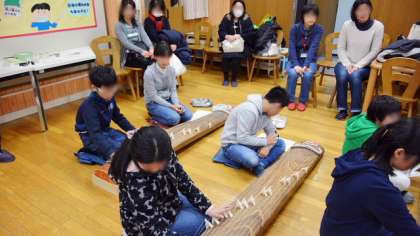 20日に引き続き、5年生は琴の先生を講師に招いて、琴の演奏を体験しました。2人に1台づつの琴を用意して、2時間で「さくらさくら・・・」の曲を演奏できるようになりました。琴の先生は学校支援コーディネーターの方が紹介してくださいました。専門家の指導のおかげで、授業の終わりごろには、みんなで合奏ができるほどになりました。