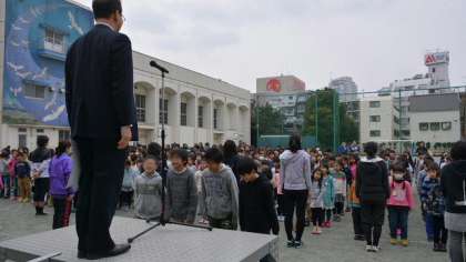 今年度も残り2ヶ月、2月になりました。1日(月)、朝会を校庭で行いました。どんより曇った空が広がり肌寒い朝でした。今日は6年生が、私立中学校の受験に行っているため、いつもの半数ほどです。それでも代表児童がいつもよりいっそう元気にあいさつの声をかけてくれたので、みんなも曇り空を吹き飛ばすように元気にあいさつできました。