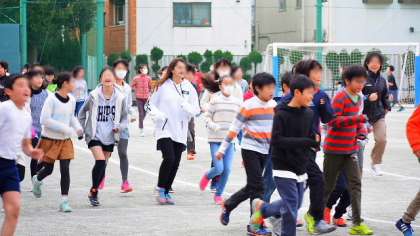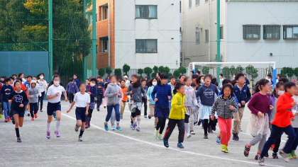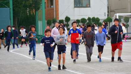4日(木)体育朝会は5・6年生が持久走を行いました。音楽に合わせて3分間走ります。各自のペースで、楽しく走るのが目標です。寒い朝は走ると気持ち良いですね。