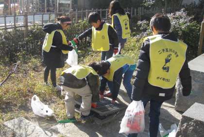 5日(金)、3年生にとって2回目のクリーンタウン作戦に参加しました。町会、地域の事業所の方々も二子玉川駅前に集まり、挨拶、説明の後、地域清掃が始まりました。3年生の子どもたちは、本当に一生懸命にゴミを拾っていました。今回は、びん類のゴミもたくさん落ちていました。